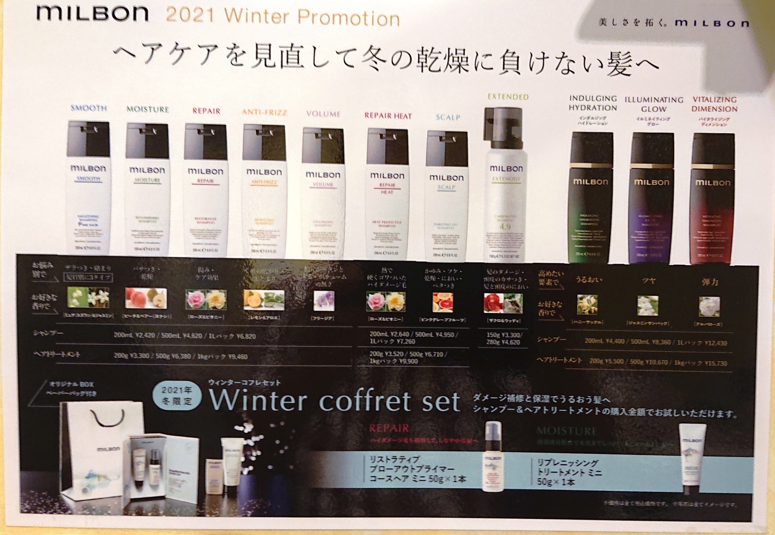 ・グローバルミルボンシリーズのシャンプー&トリートメント500ml以上のご予約で